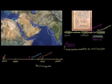 e ele é, às vezes, creditado como sendo o pai da álgebra, e é discutível se é Diophantus, Diophanti, ou se é al-Kwarizmi, que começou a usar esses termos de equações de balanceamento e falar sobre matemática de forma pura, enquanto Diophantus estava mais focado em problemas particulares. E os dois estavam à frente do tempo dos babilônios, no entanto, contribuíram cada um de uma forma, não é que eles estavam copiando o que os babilônios fizeram, eles tinham sua própria forma de contribuição, ao que agora consideramos álgebra. Alguns, especialmente historiadores orientais, associam Diophantus como o pai da álgebra, e agora, al-Kwarizmi é, às vezes, o que outras pessoas argumentariam como pai da álgebra. Então ele fez contribuições significantes. Se for por volta de 600 depois de Cristo, um outro matemático famoso na história da álgebra foi Brahmagupta, na Índia. Brahmagupta, na Índia. Então obviamente, e realmente não sei onde ele morou na Índia, deveria olhar para isso, mas dificilmente é, dificilmente naquela parte do mundo, e ele também fez uma contribuição significante. Então, claro, você tem al-Kwarizmi, que apareceu por volta disso, al-Kwarizmi, e ele é um cavalheiro que, definitivamente creditamos com o nome de álgebra. Vem do árabe para restauração. e algumas pessoas também consideram que ele seja, se não o pai, mas um dos pais da álgebra, porque realmente começou a pensar em álgebra no senso abstrato, desprovido de alguns problemas específicos e,