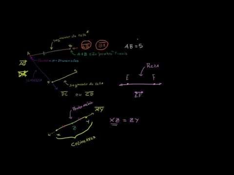 o que eu quero fazer neste vídeo é dar uma introdução à linguagem ou alguns dos caracteres que usamos quando se fala em geometria e eu acho que a melhor forma de começar é pensando no significado da geometria como você reconhece a primeira parte da geometria aqui você tem a palavra primária jeu a mesma palavra que você vê em geografia geologia e isso se refere à terra se refere a ai meu e tá parecendo um ser que se refere à terra e então você vê essa parte demetrio mitre lembra coisas como trigonometria geometria o sistema métrico vem de medida vem de medição ou medida medição então quando alguém fala de geometria a palavra em si vem de medida da terra e esse nome não é tão ruim porque é um assunto tão geral geometria é o estudo pra tentar entender como formas e espaço e coisas que vemos se relacionam entre si então você sabe quando começa a estudar geometria aprendi sobre retas triângulos círculos e aprendi sobre ângulos vamos definir todas essas coisas mais precisamente conforme a gente for se aprofundando aprendemos também como organizar coisas como padrões e formas tridimensionais então vemos quase tudo quase toda a matemática visualmente as coisas matemáticas que entendemos de alguma maneira podem ser categorizadas na geometria agora vamos começar do básico o ponto inicial da geometria e aí a gente evolui a partir disso se começarmos com um ponto esse ponto aqui é só um ponto somente um pequeno ponto nessa tela que chamamos de ponto e vou chamar isso de definição rio divertido da matemática que você pode fazer definições a gente poderia chamar isso de tato mas decidimos chamar de ponto o que faz sentido porque é como chamamos no dia a dia é um ponto o interessante é que ele é uma posição que você não pode mover se você mover-se se estivesse nesse ponto e se mover sem qualquer direção não pode mas estar naquele ponto então você não pode se mover em um ponto agora existem diferenças entre pontos por exemplo é um ponto aqui talvez eu tenha um outro ponto aqui e depois um outro aqui e talvez um outro ponto bem aqui e para se referir às diferentes pontos e nem todo mundo tem o luxo de ter uma caneta colorida como é que eu tenho aqui do contrário eles poderiam se referir ao ponto verde o ponto azul ponto rosa e em geometria para se referir à pontos a gente tende a rotular os pontos e esses rótulos tendem a ser letras por exemplo esse poderia ser o ponto a esse o bebê esse poderia ser o ponto c e aqui o ponto de então se alguém descer e círculo pontos e você sabe qual circular teria que circular esse ponto aqui é bom até agora está interessante você tem esses negócios chamados pontos e não consegue mudar os pontos tudo que eles fazem especificar uma posição e se a gente quiser mover um pouco mais se quisermos ir de um ponto a outro se a gente pegar é começamos de um e queremos todos os pontos incluindo esse que conecta com aquele ponto em outro ponto então todos esses pontos aqui daí como chamamos como chamaríamos essa coisa todos os pontos que conectam a e b por uma reta vou falar diferente uncle como uma reta vamos chamar isso de segmento de reta em uma linguagem usual você pode chamar de linha mas vamos chamar de segmento de reta reta porque em geometria quando falamos termos matemáticos uma reta pode significar coisas diferentes então esse é um segmento de reta e se a gente for ligar 10 e seria também um outro segmento de reta e mais uma vez porque não temos sempre o luxo das cores é evidente que esse aqui é o segmento de retalho laranja esse é o segmento de reta amarelo queremos rotular identificar esses segmentos de reta é a melhor forma para fazer é com pontos finais e tem mais uma palavra que um ponto é literalmente a ou b mas a e b também são pontos finais desses segmentos de reta porque começa a e terminei b então deixa eu escrever s a e b a e b são os finais uma outra definição bem aqui de novo a gente poderia ter chamado eles de tatus finais mas como matemáticos decidimos chamar de pontos finais porque parece ser um bom nome e mais uma vez precisamos de uma maneira de rotular esses segmentos de reta com isso temos os pontos finais e qual a melhor forma de rotular ou identificar um segmento de reta do que com os verdadeiros pontos finais então se a gente fosse fala desse segmento de reta colocaremos o ponto final aqui e para mostrar que esse é um segmento de reta gente desenharia uma reta sobre ele assim para esse segmento de renda aqui embaixo dá pra escrever assim ou facilmente assim cd com uma reta em cima e para se referir ao mesmo segmento de reta bea com o segmento de reta em cima se referir ao mesmo segmento de linha e agora você deve estar dizendo que não está satisfeito só andando entre a e b e na verdade essa pode ser uma outra ideia interessante quando você está somente no ar quando está somente um ponto e não pode andar de jeito nenhum não pode andar em nenhuma direção de jeito nenhum enquanto estiver nesse ponto significa que têm zero opções para andar você não consegue ir pra cima pra baixo direito à esquerda dentro ou fora da página e ainda assim ficaria no mesmo ponto é por isso que dizemos que um ponto tem zero dimensões agora do nada temos essa coisa esse segmento de reta aqui e com esse segmento de reta podemos pelo menos ir para a direita ou para a esquerda dá pra ir na direção de algo na direção de bem não conseguimos ir pra frente ou para trás numa dimensão sendo assim o segmento de reta é de uma dimensão é uma idéia de uma dimensão um objeto unidimensional mas essas são ideias mais abstratas não existe nada tão perfeito como o segmento de reta porque você não pode mover nada em um segmento de linha não consegue mover pra cima pra baixo esse segmento de reta enquanto estiver nele na realidade qualquer coisa que a gente pensar é um segmento de reta até um palito um palito bem reto uma corda larga mesmo