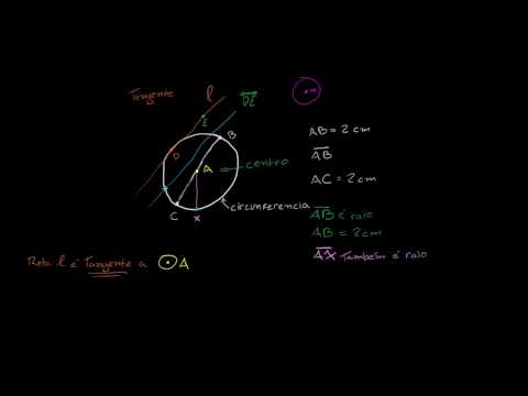 vamos começar novamente com um ponto vamos chamá-lo de pontuar e o que me deixou curioso são todos os pontos na minha tela que estão exatamente a dois centímetros do ponto a então dois centímetros na minha tela são mais ou menos isso claramente seu começarem a me for dois centímetros naquela direção este ponto está a dois centímetros de a se chamar ele de ponto b então poderia dizer que o segmento de reta abimed dois centímetros de comprimento é de dois centímetros lembre isto se referiria um segmento de reta de verdade poderia dizer que parece legal mas se estiver falando sobre o seu comprimento eu teria que me livrar daquela reta em cima e diria que só a br qual a 2 se eu quisesse usar unidade diria dois centímetros mas eu não tô curioso só com b eu quero pensar a respeito de todos os pontos o conjunto de todos os pontos que estão há exatamente dois centímetros de ar poderia ir de 2 centímetros em outra direção talvez chegar ao pontos e bem aqui então a ce também será igual a dois centímetros mas poderia ir de 2 centímetros em qualquer direção e então se eu achar todos os pontos que estão exatamente dois centímetros do pontuavam ter uma aparência bem familiar como esta que o desenhando à mão livre teria uma forma mais ou menos assim na verdade eu vou desenhar isso eu não quero fazer vocês pensarem que são só os pontos onde tem branco são todos esses pontos aqui deixou limpar todos esses e vou desenhar uma linha contínua poderia parecer com isso minha melhor tentativa e esse conjunto de todos os pontos que estão há exatamente dois centímetros de a é uma circunferência que eu tenho certeza que vocês já conhecem mas esta é a definição formal os conjuntos de pontos que estão a uma distância fixa de a se dissesse o conjunto de todos os pontos que estão a 3 centímetros já poderia parecer algo assim isso nos daria outra circunferência acho que você já entenderam o princípio agora o que eu quero introduzir pra vocês neste vídeo são alguns dos conceitos e palavras que usamos quando a gente lida com circunferências então eu me livrar da circunferência de três centímetros primeiro de tudo vamos pensar sobre essa distância ou um desses segmentos de reta que unem a que chamaríamos de centro da circunferência vamos chamar a de centro da circunferência o que faz sentido pela forma como usamos a palavra centro na vida cotidiana o que eu quero fazer é pensar sobre o que é o segmento de reta abi abib conecta o centro e um ponto na circunferência em si lembre-se a circunferência em si é todos os pontos que estão uma distância igual à do centro e então ab qualquer ponto aliás segmento de reta que conecte o centro há um ponto na circunferência chamaremos de raio e assim o comprimento do raio é de dois centímetros provavelmente você já conhece a palavra raio estou sendo apenas um pouco mais formal e o que é interessante na geometria ao menos quando começa a aprender no ensino médio é que provavelmente nesta primeira aula que você será apresentado à matemática levemente mais formal onde somos um pouco mais cuidadosos para dar nossas definições e depois as construções sobre essas definições para chegar a resultados interessantes então provar para nós mesmos que definitivamente sabemos o que achamos que sabemos é por isso que estamos sendo um pouco mais cuidadosos com a linguagem aqui a b um raio segmento de reta a b e é segmento de reta deixou colocado outro ponto aqui digamos que este x então o segmento de reta ashes também raio agora você também pode ter outras formas retas e segmentos de retas que interagem de forma interessante com a circunferência poderia ter uma reta que intercepta esta ser conferência exatamente em um ponto vamos chamar este ponto de ponto de e digamos que tenha uma reta e o único ponto na circunferência que o único ponto no conjunto de todos os pontos que estão a uma distância igual de ar o único ponto naquela circunferência que também está na reta é o ponto de que poderíamos chamar aquela reta de reta l algumas vezes vão ver retas especificadas por alguns dos seus pontos por exemplo se tem outro ponto chamado e a gente poderia chamar esta reta de reta de e ou poderemos colocar uma pequena reta aqui com ele e dizer que a reta l mas essa reta também têm um ponto em comum com a nossa circunferência chamamos isso de reta tangente então a reta l é tangente tangente a circunferência então deixa eu escrever assim reta l reta l é tangente a circunferência centrada em a isso nos diz que esta é a circunferência da qual estamos falando porque alguém sabe de repente temos outras circunferência que é centrada no m temos que especificar não é uma tangente específica pra esse é tanta gente pra esse aqui essa circunferência com um ponto no meio disso que estamos falando sobre circunferência e esta é uma circunferência centrada no ponto a eu quero ser bem claro ponto a não está na circunferência pontuar é o centro da circunferência os pontos nas conferências são os pontos e que distantes do a agora ele é tangente porque só intercepta a circunferência um ponto você poderia tão fácil quanto imaginar uma reta que interceptassem conferência em dois pontos poderemos dizer talvez que este seja efe e este seja g poderia chamar essa reta dfg ea reta que intercepta em dois pontos chamamos de retas e cante a circunferência é uma reta secante a estas circunferência bem aqui porque intercepta a circunferência em dois pontos agora se fg fosse só um segmento se não continuasse seguindo em frente pra sempre como retas fazem se tivéssemos só falado sobre este segmento de reta entre fg e não pensado em seguir adiante para sempre de repente temos um segmento de reta que iríamos especificar ali iremos chamar isso de corda da circunferência acorda da circunferência a começa em um ponto da circunferência um ponto que está neste caso a dois ce