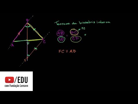 neste vídeo quero primeiro mostrar a você o que é o teorema da bissectriz interna e daí a gente vai de fato demonstrar isso matematicamente tem um triângulo qualquer bem aqui triângulo abc o que eu vou fazer é desenhar uma bissectriz de ângulo para este ângulo em cima pra gente fazer isso com qualquer um dos três ângulos mas vou fazer esse que vai se tornar a nossa demonstração assim fica um pouco mais fácil então vou dividir esse ângulo em 21 golo abc e digamos que essa é a bissectriz do ângulo abc este ângulo aqui é igual a esse outro ângulo aqui vou chamar esse ponto aqui no chamado de ponto de o teorema da bissectriz interna o teor e mandar bissectriz interna afirma que a razão entre os lados que não são estas bissectriz quando coloquei essa bissectriz nesse ângulo ela criou dois triângulos menores daquele maior ali o teorema a bissectriz interna nos diz que a razão entre os outros lados desses dois triângulos que foram criados agora será mesmo entre eles isso significa que a razão entre a abih a razão entre a abih a de ead será igual a razão entre bc a razão entre bc e pode dizer cd e cd então a razão vou usar outras cores a razão entre aquilo que é isto a isso a isso será igual a razão disto que é aquilo pra isso aqui para aceder que é aquilo lá é meio uma vez que perceba que a razão daquilo pra quem não será a mesma que a razão daquilo por aquilo a gente tem um resultado bem legal mas não deve aceitar isso só pela fé só porque o resultado é legal queremos provar isso matematicamente então pode imaginar que aqui temos alguma relação montada vamos provar isso usando à semelhança de triângulos e para nosso azar esses dois triângulos aqui não são necessariamente semelhantes de fato não podemos sabemos que esses dois ângulos são congruentes entre si mas não sabemos se esse ângulo é igual aquele ângulo ou que não sabemos a gente não pode fazer nenhuma afirmação como esta então para poder de fato fazer uma afirmação desse tipo vamos talvez ter que montar um outro triângulo que será semelhante a um desses aqui e um jeito de fazer isso seria desenhar uma outra reta isso é um pouco dessa demonstração que não foi óbvia pra mim na primeira vez em que pensei nela então não se preocupe se não for óbvio pra você e se a gente puder vamos continuar com essa bissectriz essa diretriz interna aqui vamos continuar seguindo mais e mais e mais também talvez vamos desenhar um triângulo semelhante a esse triângulo aqui se desenharmos uma reta paralela a abeac daí a gente tenta fazer isso apenas vou dizer bom você sabe que pode sempre achar se senão está em abril você pode sempre achar um ponto que passa uma reta que passa por ser que é paralela ab agora vamos por definição vamos apenas criar uma outra reta aqui digamos que vamos chamar esse ponto aqui df vamos escolher essa reta de tal forma que fc seja paralela à ab isto é paralelo aquilo de forma que fc seja paralela à ab a gente pode montar isso dessa forma agora temos algumas coisas interessantes fizemos tudo isso dessa forma para fazer esses dois triângulos semelhantes um ao outro vamos ver o que acontece antes até de falar das semelhanças a gente vai falar sobre alguns dos ângulos o que sabemos sobre alguns desses ângulos aqui sabemos que temos ângulos alterna os internos então veja essas duas retas paralelas possa imaginar que a b continua assim fc também continua assim a reta bd aqui é transversal então seja qual for a medida desse ângulo esse ângulo será igual também por ser em ângulos alterna os internos coisas sobre as quais falamos bastante quando começamos a falar de ângulos e transversais e tudo mais esses dois ângulos terão que ser iguais mas esse ângulo esse ângulo também terão que ser iguais porque esse ângulo é aquele ângulo são os mesmos e isso é uma biz e 13 por ser uma diretriz a gente sabe que o ângulo a bd é igual ao ângulo de bc então quanto valer esse ângulo aquele ângulo tanto vai valer esse ângulo isso nos dá uma espécie de resultado interessante porque aqui nós temos uma situação temos uma situação onde se olharmos esse triângulo maior bfc a gente tem dois ângulos da base que são iguais o que significa que isso tem que ser um triângulo isósceles bc tem que ser igual à f c então o bc tem que ser igual à f c isso foi bem legal a gente usa transversal e os ângulos alterna os internos para demonstrar que eles só se eles e qb cfc são a mesma coisa isso poderia ser útil porque nós sabemos que queremos a gente tem a sensação de que esse triângulo esse triângulo terão que ser semelhantes ainda não provamos isso mas como isso vai nos ajudar a descobrir algo sobre o segmento bc mas acabamos de mostrar que bc fc são a mesma coisa isso será a mesma coisa que aquilo que queremos provar se conseguirmos provar que fc a razão entre a b ea de é a mesma coisa que a razão entre fc ec de então nós chegamos lá porque bc acabamos de demonstrar é igual à fc mas não vamos começar com o teorema vamos de fato chegar ao teorema então fc é paralela à ab somos capazes de montar esse aqui um triângulo isósceles mostrar que esses lados são congruentes agora vamos olhar esses outros triângulos aqui depois vamos nos sentir bem sobre isso mas a gente tem isso se olharmos o triângulo a bebê esse triângulo aqui eo triângulo fdc já estabelecemos que eles têm um conjunto de ângulos que são iguais também os dois a bd tem esse ângulo aqui o qual será que é um ângulo oposto pelo verso é esse aqui nesse aqui são congruentes a gente sabe que se dois triângulos tem dois ângulos que são iguais então o terceiro dos dois também terá que ser igual ou poderemos dizer que pelo postulado da semelhança ângulo ângulo esses dois triângulos são semelhantes deixa eu escrever isso aqui você quer ter certeza de achar os lados correspondente certos agora sabemos pelo ângulo ângu